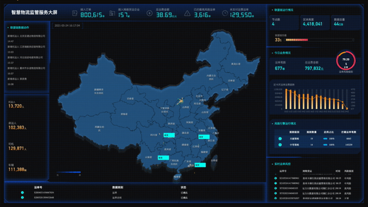 运用联盟区块链技术,将企业工商、经营、资金、车辆轨迹等数据纳入区块链节点,让业务完整数字复现,并向国家平台数据共享。